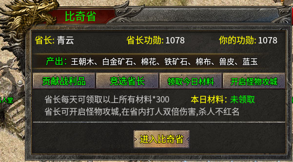 在以往,沙巴克老大只有一个,每次大家必然是抢得头破血流!在这里你可以当比奇省长、白日门主、封魔谷主、苍月岛主或魔龙城主